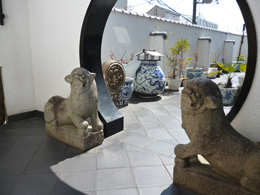 玄関先、裏庭に通じるところにある「狛犬」は、
