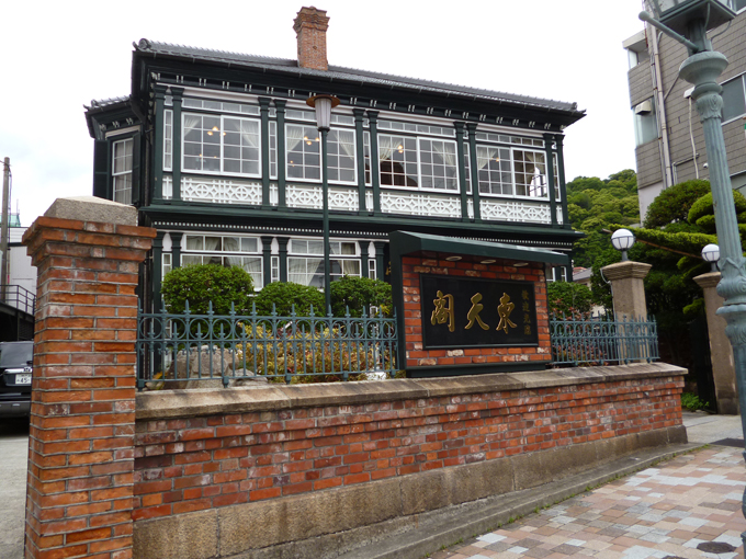 明治27年(1894年)築。ドイツ人ビショップの旧邸宅。下見板張りベランダコロニアル様式。昭和20年に高級中華料理店「東天閣」として改装。現在も続く。