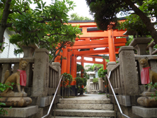 1336年以前に創建。楠木正成ゆかりの松があったことから「松尾稲荷」と呼ばれるようになった。商売繁盛と衣食住、縁結び。大正時代につくられたというビリケンもある。