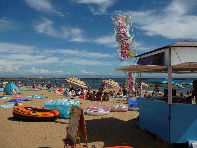 阪神間最大規模の海水浴場。砂浜の幅50〜150m、長さ1800m。毎年70、80万人ほどの海水浴客が訪れる。古代からの景勝地として知られる。